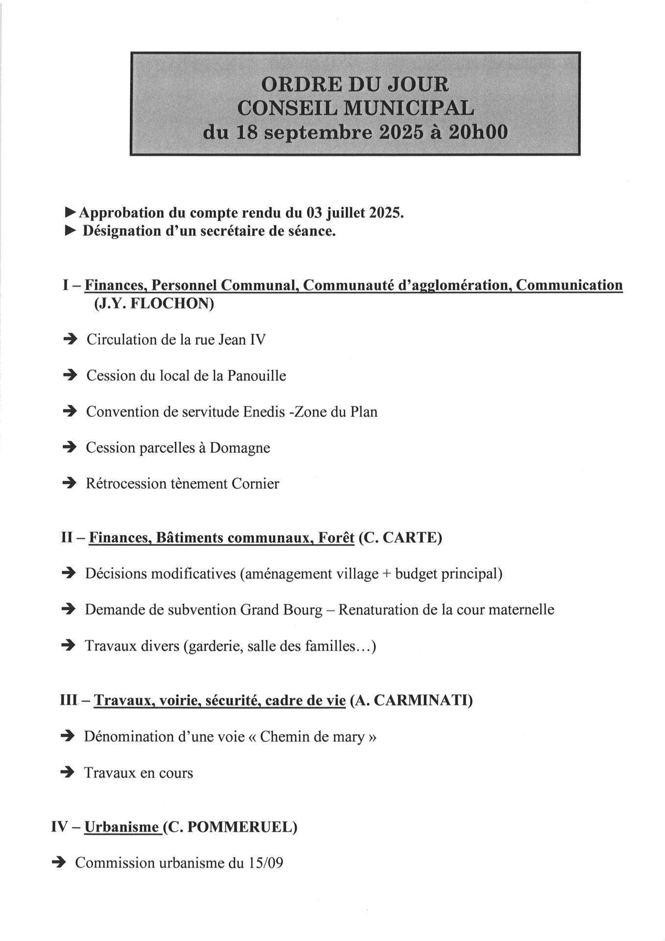 ORDRE DU JOUR CONSEIL MUNICIPAL